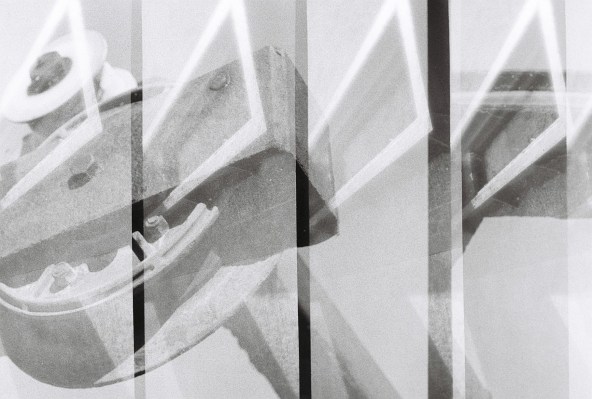 Each of the spaces in Three Films was first shot with a 35mm stills camera—a Pentax P30 or ME Super—the stills film was then put through a Lomokino cine camera, a small, hand-operated movie camera. The resultant imagery, full of shifts in focus, varying orientations, competing frames and a wealth of detail, have always been considered as both still and moving artworks, with neither taking precedence over the other. This tension gives the work an on-going sense of ambiguity and allows the modes of production to produce the modes of looking.