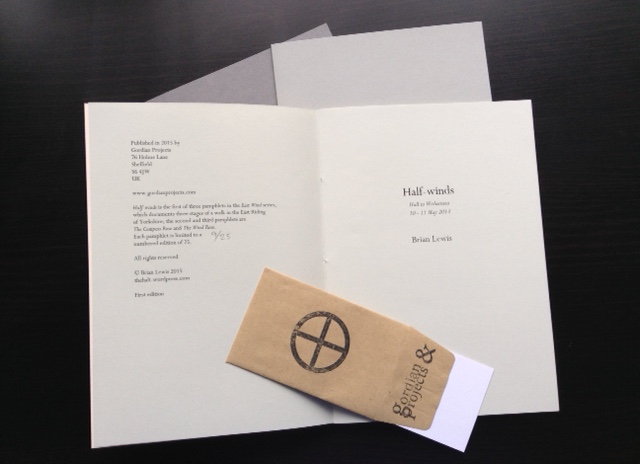 East Wind is a limited edition set of three handmade pamphlets containing a sequence of lyrical essays and haiku that narrate the author’s 24 hour walk from Hull to Withernsea over the 10th and 11th May 2014. Each set comes with a extra enveloped haiku unique to that copy. To find out more and buy this edition please click here.
